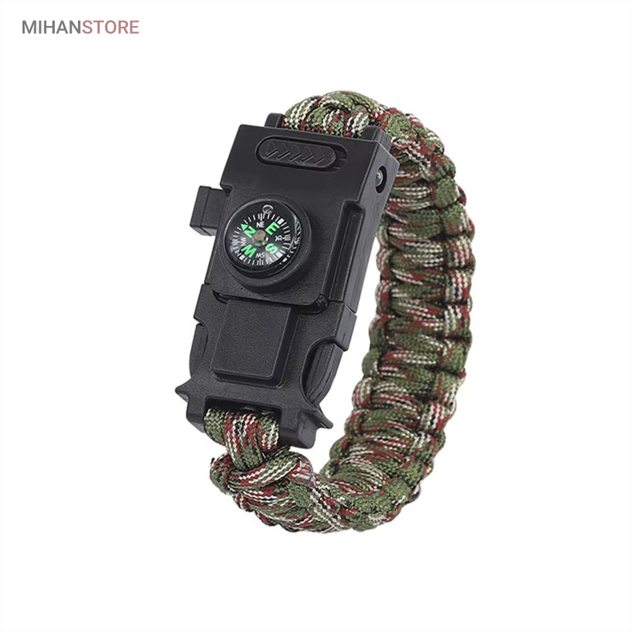 دستبند پاراکورد و نجات دارای وسایل ضروری برای بقا در طبیعت است، به وسیلۀ این دستبند می‌‌توانید به راحتی آتش روشن کنید، از ارتفاع پایین بیایید، مسیریابی کنید، ماهیگیری انجام دهید و… اگر به شکل دستبند پاراکورد و نجات نگاه کرده باشید متوجه می‌‌شوید که مانند یک طناب است، جالب است بدانید که طناب پاراکورد ساخته شده برای چتربازی هم مورد استفاده قرار می‌‌گیرد و از مقاومت و استحکام بسیار بالایی برخوردار است. مقاومت بالای این طناب به میزانی است که می‌‌توانید یک وزنه‌‌ی 200 کیلوگرمی را بدون نگرانی به آن متصل کنید، از طناب پاراکورد علاوه بر چتربازی می‌‌توان در ماهیگیری، بند آوردن خونریزی، درست کردن آتش،  فرود آمدن از ارتفاع، طناب نگهدارنده‌‌‌‌ی چادر، درست کردن پناهگاه و… نیز استفاده کرد.دستبند پاراکورد و نجات معمولا از 7 تا 9 رشته طناب با طولی 3 تا 4 متری تشکیل شده است که می‌‌توان برای مصارف مختلف در سفر از آن استفاده کرد. دارای ضروریات مربوط به یک سفر بوده و همچنین می‌‌تواند به دلیل زیبایی آن نیز مورد استفاده قرار گیرد، این وسیلۀ کاربردی می‌‌تواند کادوی بسیار مناسبی برای افرادی باشد که بسیار در طبیعت سفر می‌‌کنند. قطب نما، سوت اضطراری این سوت سطح سر و صدا را می‌تواند تا 110 db ایجاد کند و به امدادگران سیگنال دهد و چاقو که برای برش طناب و مواقع ضروری مورد استفاده قرار می‌گیرد و پشت چاقو در قسمت بالا هم دندانه‌هایی قرار دارد.