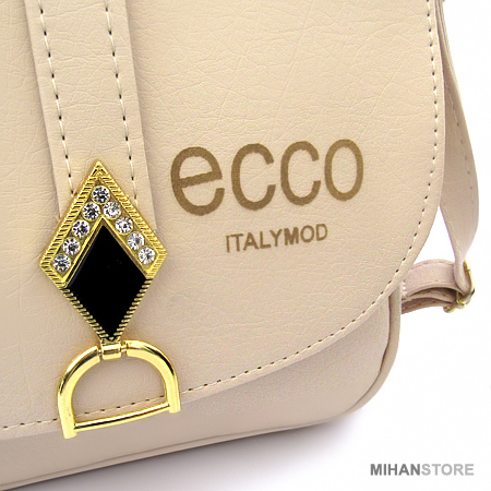 کیف زنانه Ecco جنسی از چرم مصنوعی با کیفیت بالا، دوخت تمیز و ظاهری زیبا دارد و دارای رنگ مشکی، کرم و عسلی می باشد. کیف زنانه Ecco یک کیف روزمره/فشن/مجلسی می باشد و از یک بند رودوشی قابل تنظیم برخوردار بوده و دارای یک محفظه بزرگ اصلی زیپدار و و یک محفظه کوچک داخل کیف و یک محفظه متوسط زیر درب و یک محفظه کوچک زیپدار پشت کیف می باشد. کیف زنانه Ecco دارای ظاهری بسیار زیبا و شیک می باشد که وجود نگین های درخشان زیبایی و درخشش این کیف را دو چندان نموده است. ویژگی منحصر به فرد کیف زنانه Ecco برخورداری از نگین های درخشان در قسمت جلوی کیف می باشد که به زیبایی آن افزوده است.