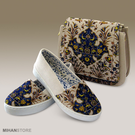 فرهنگ و تمدن هر کشوری نشان دهنده اصالت و قدمت آن است. امروزه مردم کشورهای غربی با چنگ و دندان پاسدار فرهنگ نه چندان قدمتدار خود هستند آنجا که ایران ما دارنده فرهنگی عمیق پر از نقش و نگار و خصوصیات اخلاقی ویژه است. این ست کیف و کفش علاوه بر جادار بودن کیف، و کفش فوق العاده راحت دارای نقش و نگاری است که برگرفته از فرهنگ ایرانی است. زیبایی این طرح نه تنها در ایران بلکه در تمام دنیا مورد پسند همگان است و زیبایی و جذابیت خاصی دارد که تحسین همگان را بر می انگیزد. کفش این ست در سایزبندی 37 الی 40 عرضه شده است که هنگام تکمیل فرم سفارش می توانید سایز مورد نظر را انتخاب کنید.